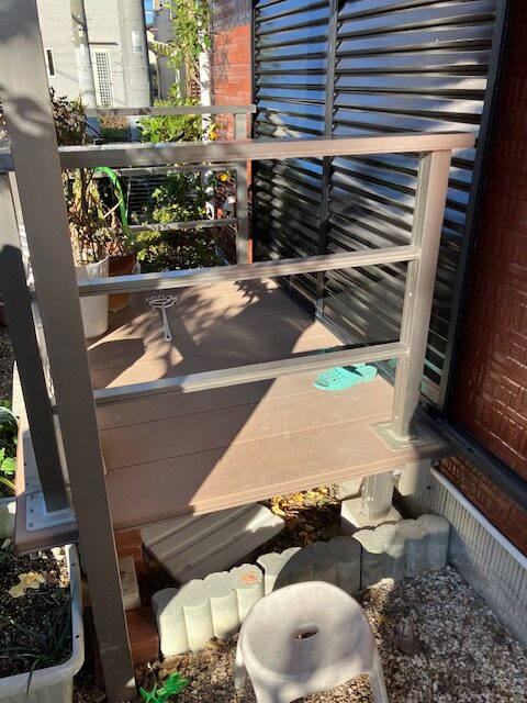 先日2度目塗装工事が完工したK様邸、その際既設ウッドデッキの囲まれてる手摺りを降りれるようにしてほしいとの追加工事。