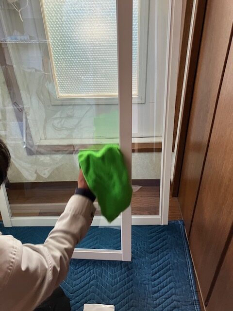 インプラスを設置前にガラス拭き。