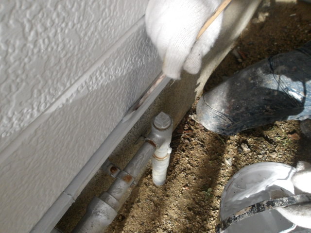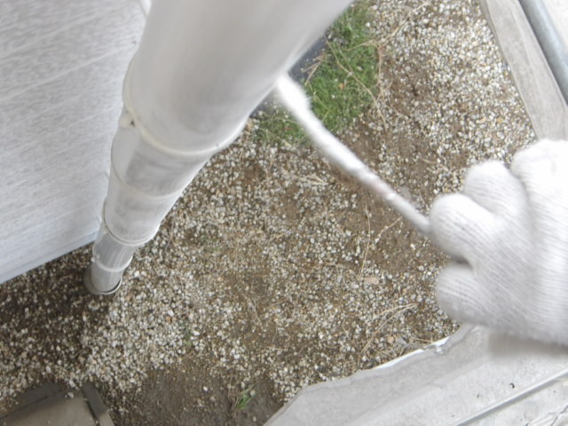竪雨樋下塗り。