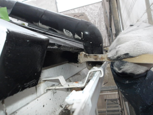 シャッターBOX等鉄部 ケレン・錆止め塗装続き。