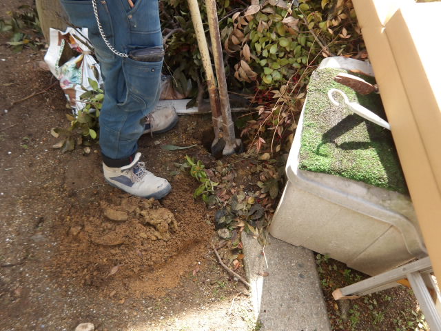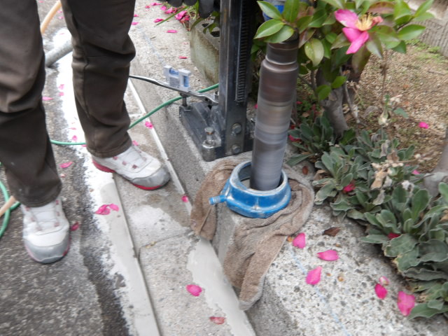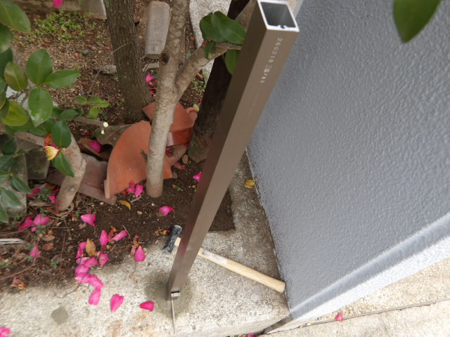 フェンス支柱用コア抜き、支柱設置、テラス設置。
