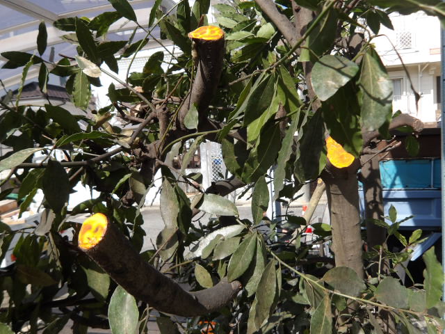 剪定をした樹木は切り口に保護剤を塗布。