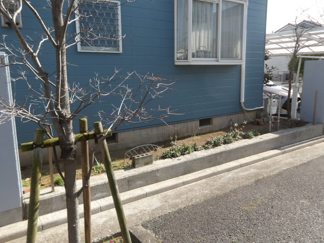 植栽伐採、ウッドデッキ設置、フェンス残り支柱設置。