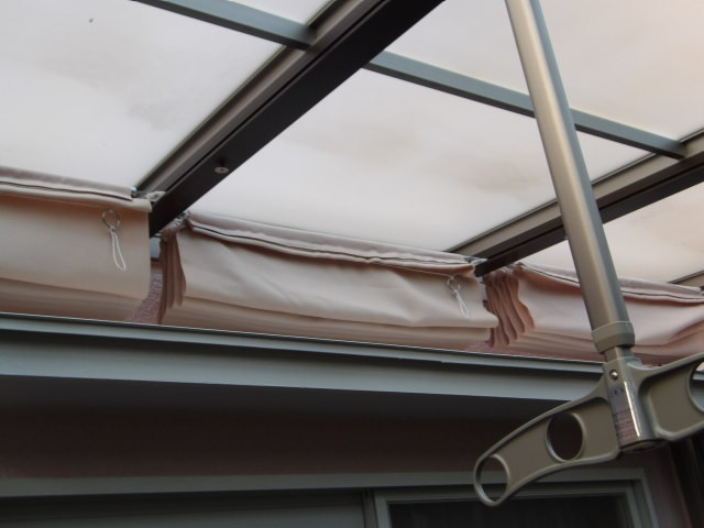 サンルーム内カーテン復旧。
