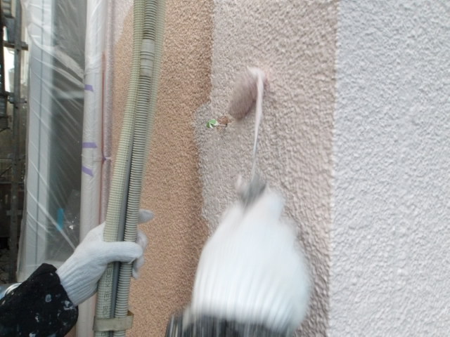 西・南面外壁 プレミアムシリコン ローラー中塗り。