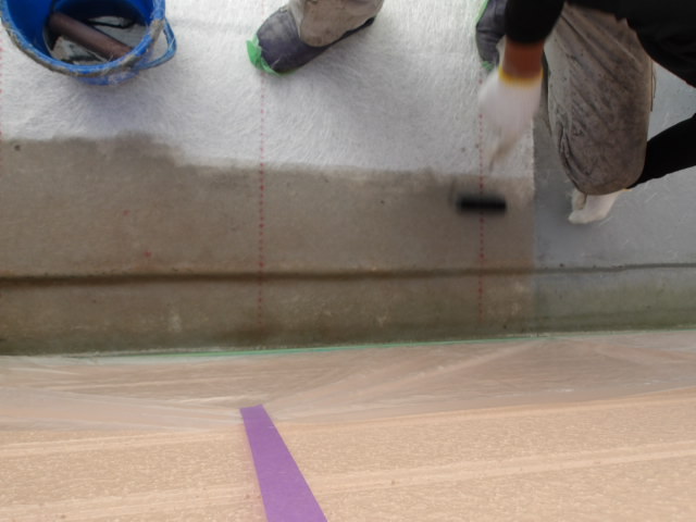 ガラス繊維を敷きポリエステ樹脂で押さえて防水層を再構築