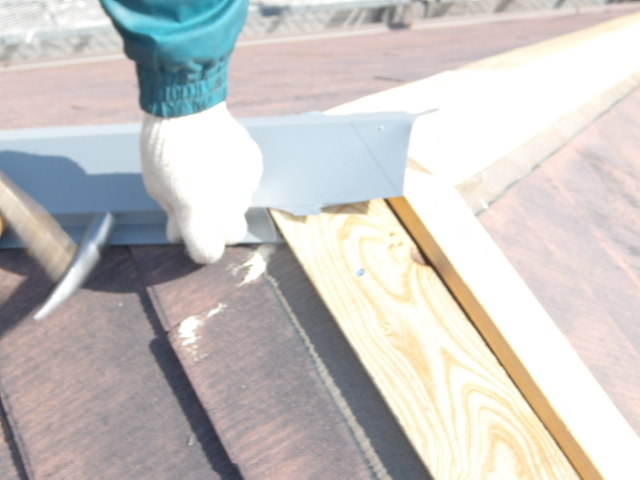 全屋根棟ブリキを桟木から修繕。