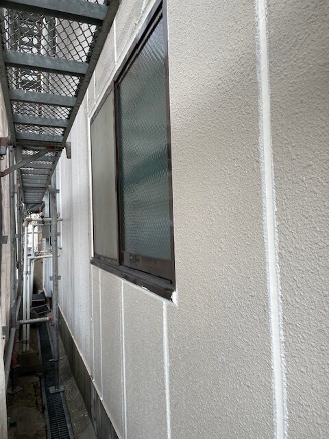 1階小島戸面格子取り付け施工前。写真はシーリング工事施工後。