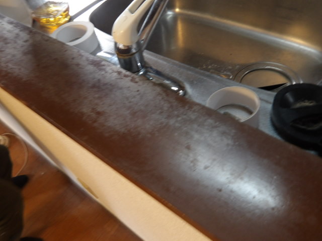 対面キッチン木部塗装前。