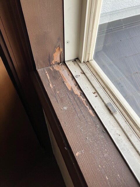 リビング掃き出し窓施工前。詳しい施工工程はリペア編をご覧ください。