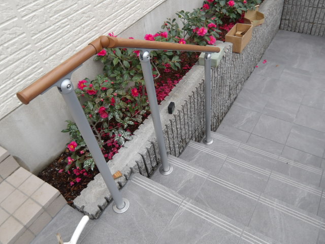 神戸市西区井吹台西町 A様邸 玄関アプローチ・階段タイル貼り、階段手摺り新設工事