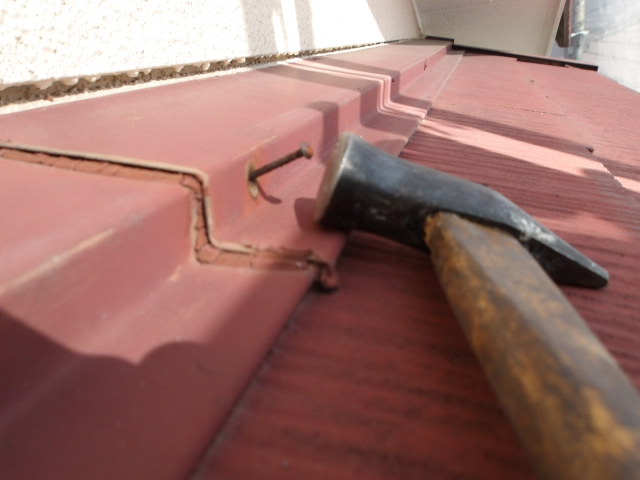 抜けかけてる釘は打ち込み直し抜けにくくなる様シーリング、ひび割れた瓦もシーリング補修。
