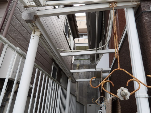 外構工事、浴室リフォーム、オーニングテント張り替え等々お世話になってるS様邸。この度は外部改修工事のご依頼。週明け足場架設のため、本日はテラスパネル撤去。
