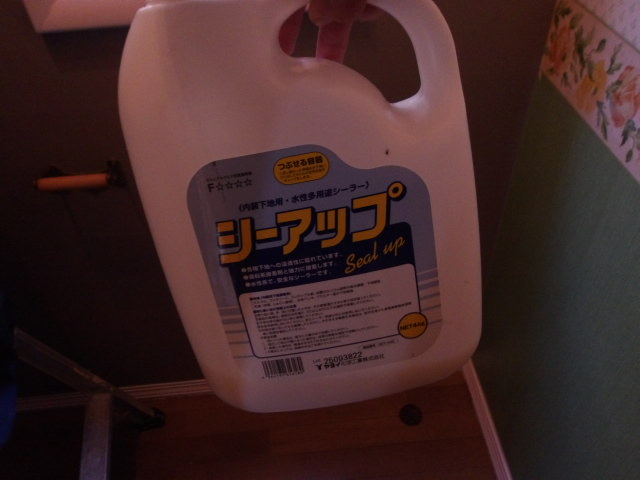 既設クロスも海外製で捲りができないため既設クロスの上から貼ることのに。その際捲れにくくするために既設クロスにシーラー塗布。
