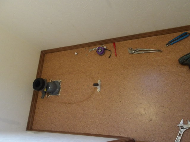 2階トイレ取り換え作業の間に、1階トイレ壁クロス貼り。施行前。