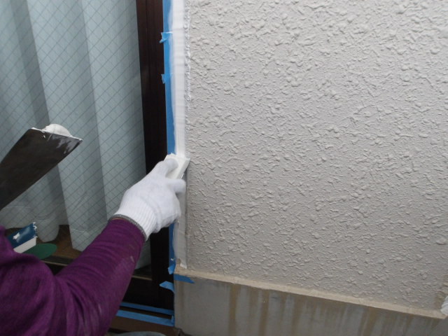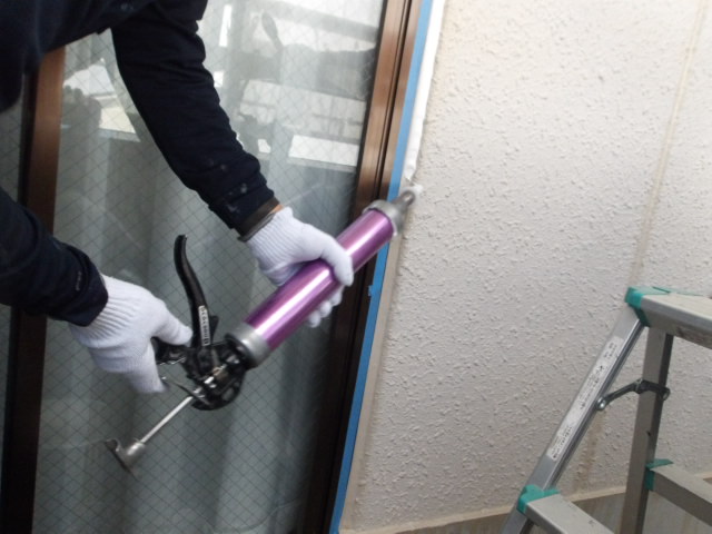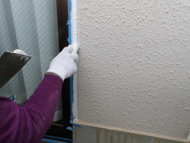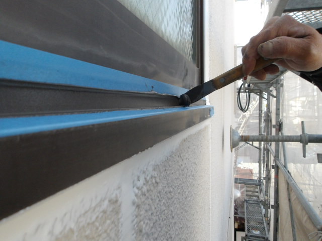 シーリング2日目、目地残り、サッシ周り増し打ち、面台切り取り・打ち替え。