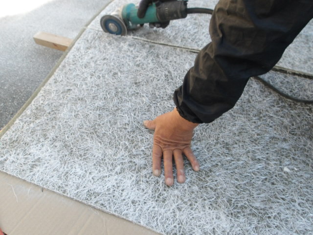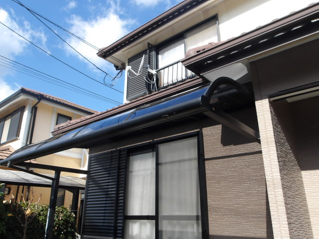 スズメなどの鳥が巣の材料にするため飛来してガラス繊維のささくれが余計に酷くなってきたとの事での取り替えの施工後、テラスも同様の追加工事のご依頼。