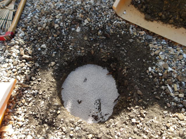 根周り土に空気が入りやすくなるようサンゴを砕いたイソライトに堆肥を混ぜてから土壌を作り植樹。