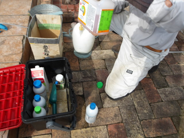 樹木に影響が出なく除草だけできる様に、除草剤を調合して散布。
