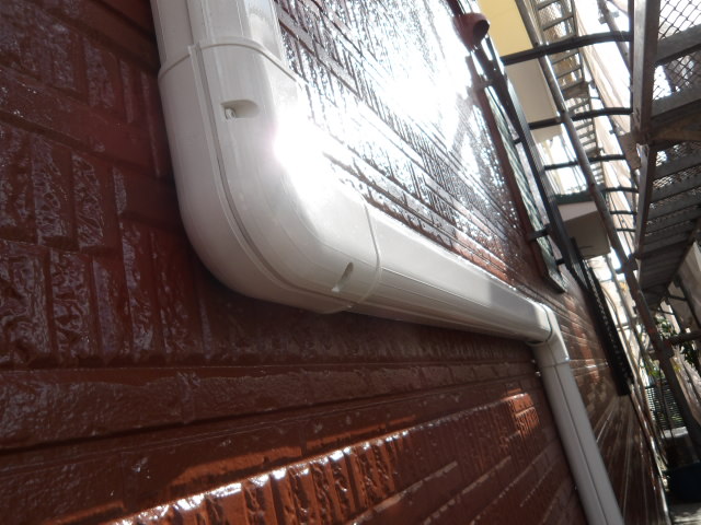 溶剤シリコン 水切りブリキ残り上塗り、点検・手直し・掃除、エアコンスリムダクト復旧、1階残りのサッシ清掃・窓拭きで塗装工事完了。