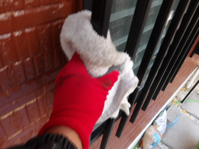 1階残りのサッシ清掃・窓ガラス拭き。塗装工事完了。
