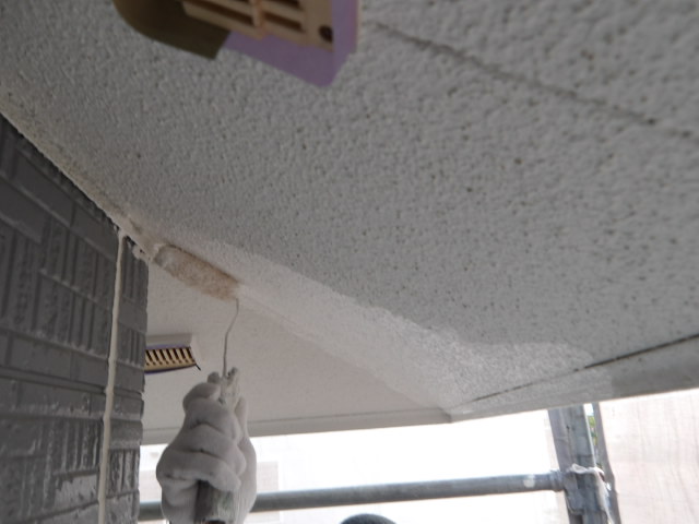 東面1階・2階軒天井 湿気透過型塗料下塗り。