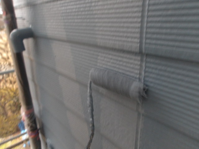 1階東・西面外壁 プレミアムシリコンローラー上塗り。