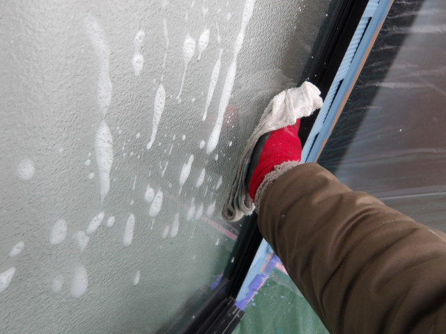 サッシ清掃。