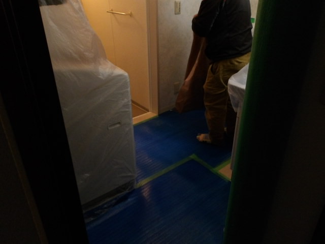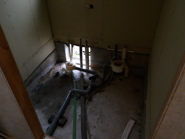 本日の現場レポート、既設浴室・入り口解体、各配管の仕込み。