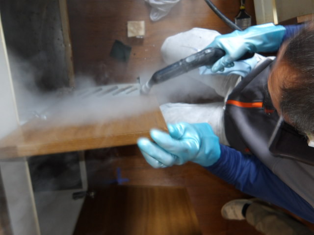 キッチン内スチームで油取り。