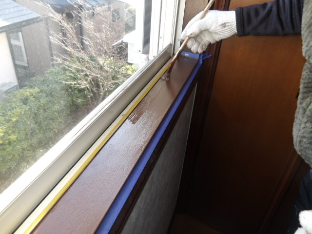窓額縁・キッチンカウンター中塗り・上塗り、1F洗面化粧室・キッチン一部ハウスクリーニング。