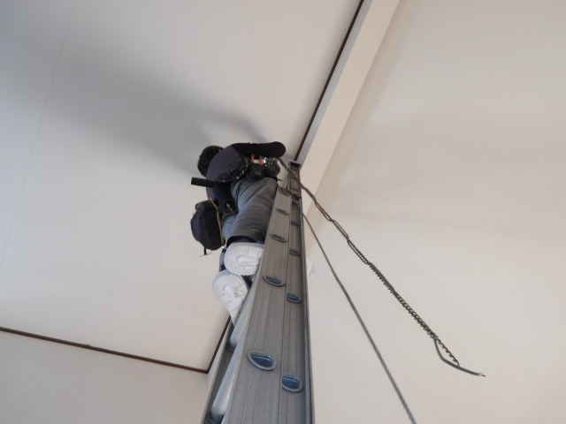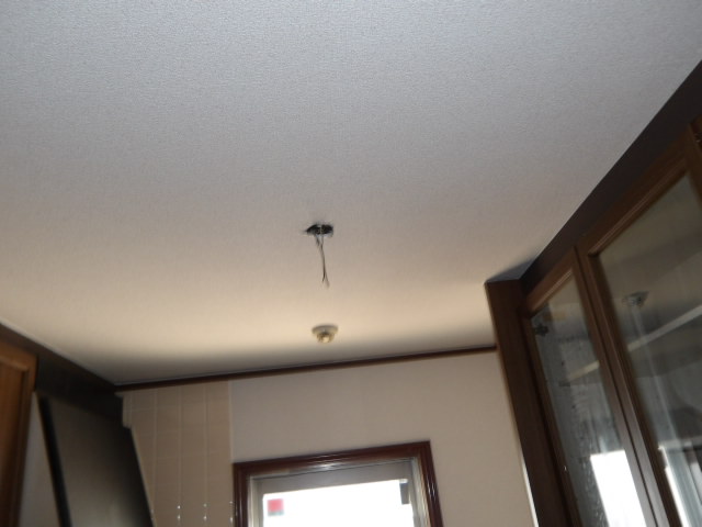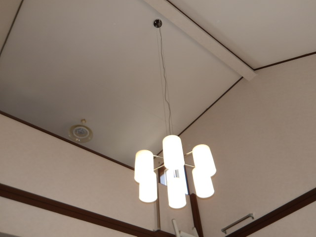1階吹き抜け洋室の吊り下げ照明取り替え施工前。