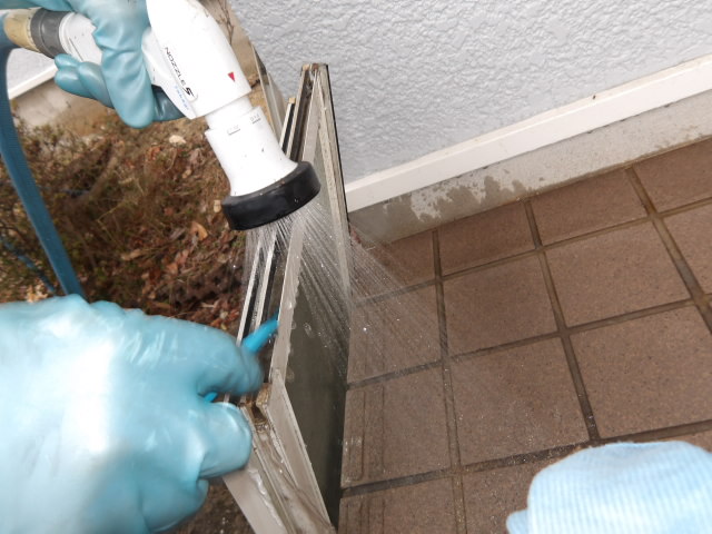 サッシ清掃。