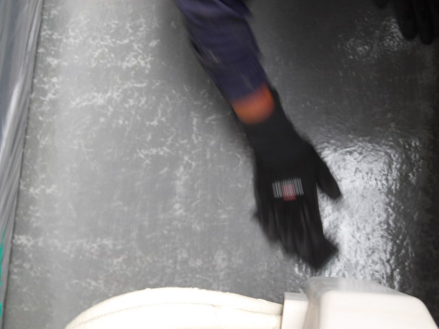 滑り止め骨材入りトップコート上塗り。