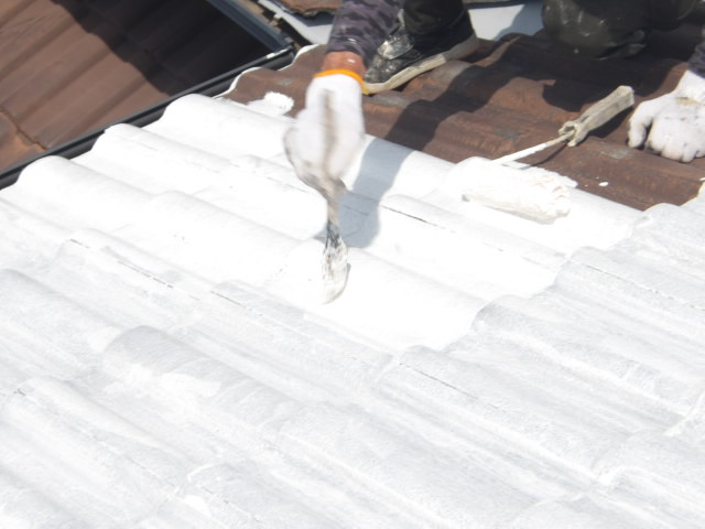クールタイトシーラー下塗り、大屋根下塗り後下屋根下塗り。