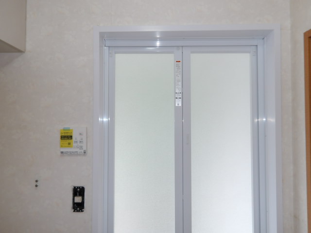 浴室入り口壁クロス貼り替え施工前。