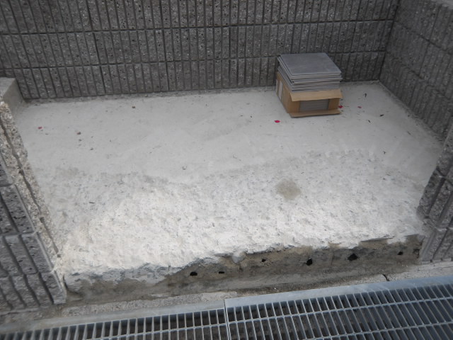 本日の現場レポート、既設タイル一部・門踊り場を斫り。