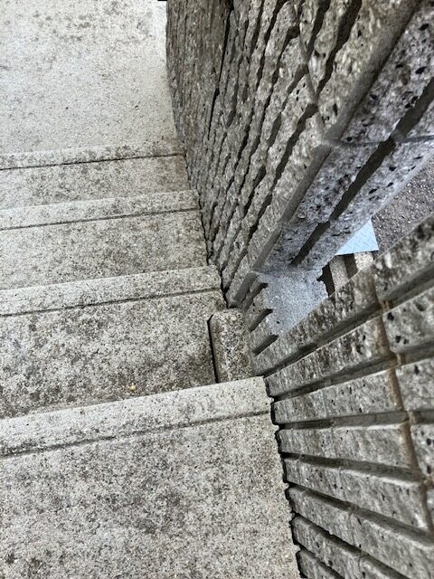 13日に2度目のシーリング・各塗装工事完了し足場解体に引き続き、玄関アプローチ・階段タイル貼り、階段手摺り新設工事を着手。