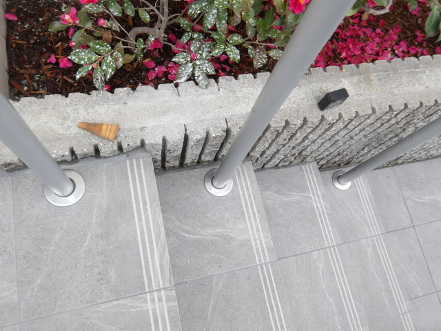 タイルを貼り終わり、手摺り設置施工前。