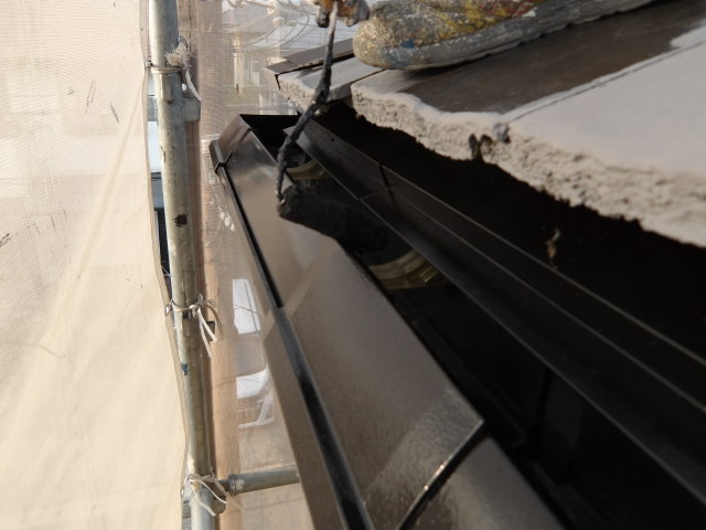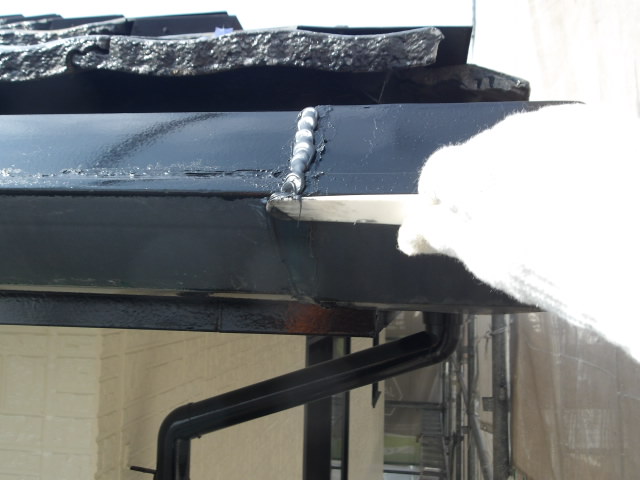 野地板・破風板・軒雨樋裏・軒雨樋裏の下塗り。