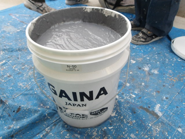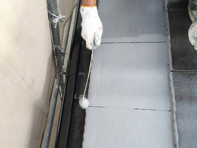 屋根シーラー下塗り、鼻先瓦 ガイナ中塗り・上塗り。