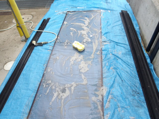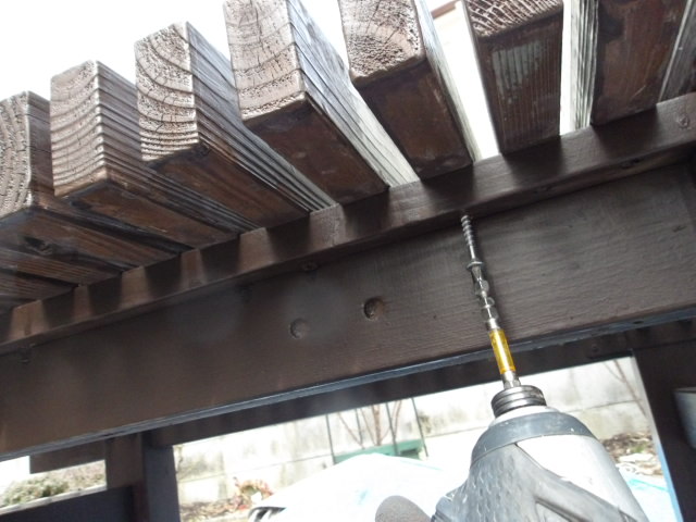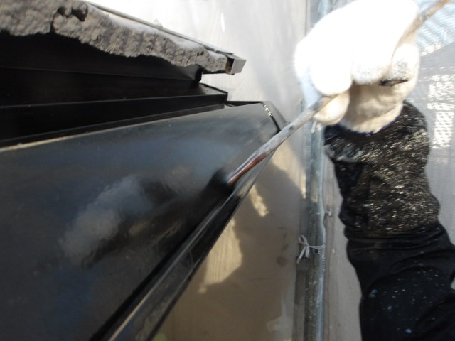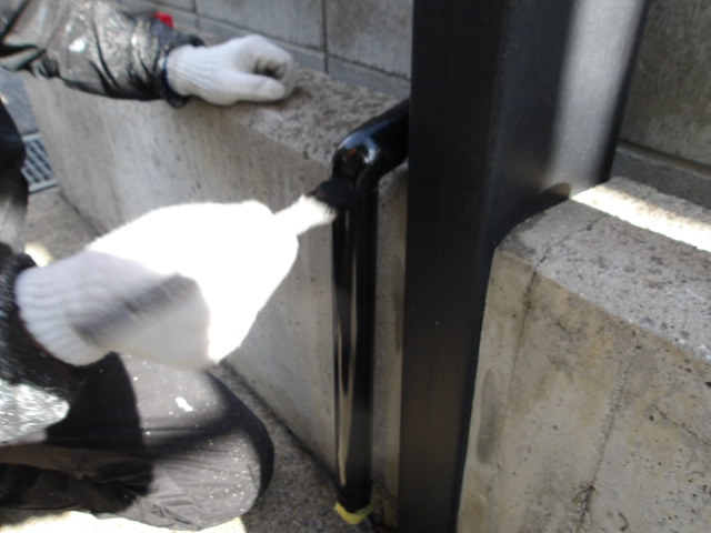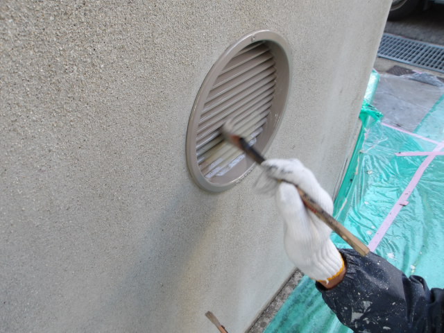 濡れ縁台 キシラデコール2回塗り、外壁3度目の点検・手直し・はみだし拭き取り、溶剤シリコン 軒雨樋上部上塗り、カーポート雨樋・床下通気口・玄関灯・門灯等2回塗り、補修をした棟の周辺の瓦のシーラー下塗り、屋根断熱塗料ガイナ中塗り・上塗り、バルコニー内エアコンスリムダクト3箇所・塗装後の玄関灯復旧、カーポートパネル及び部材手洗い。塗装工事完了。