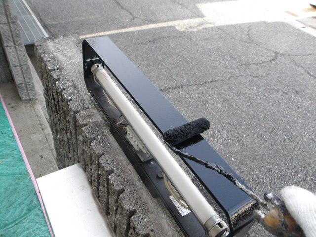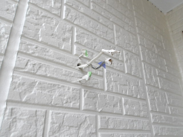 一旦撤去して塗装した外壁の玄関灯復旧前。玄関灯は溶剤シリコン2回塗りをして復旧。