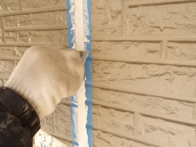 シーリング工事2日目、シール打ち込み、押さえ。