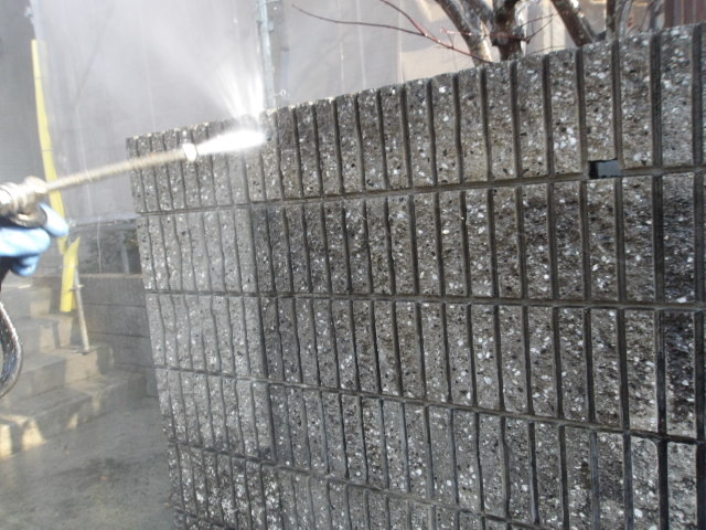 玄関アプローチ・外構・ブロック塀の洗浄。