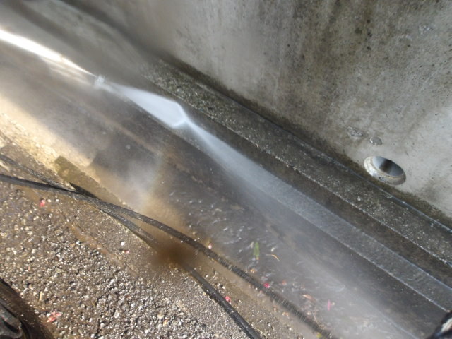 排水ドレンも、雨樋の竪樋の落とし口同様ゴミ詰まりが無い様念入りに洗浄。