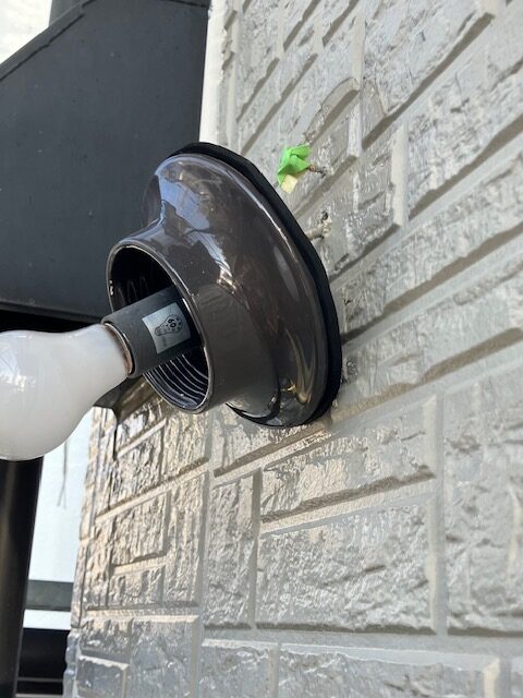 高圧洗浄後、外壁を塗装するための勝手口灯・玄関灯取り外し。