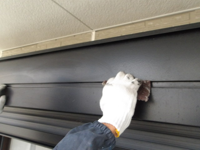 各鉄部ケレン。シャッターBOXのケレンご錆止め塗装・