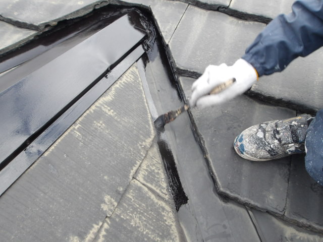 屋根各ブリキ錆止め塗装。