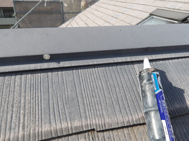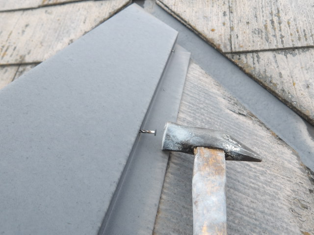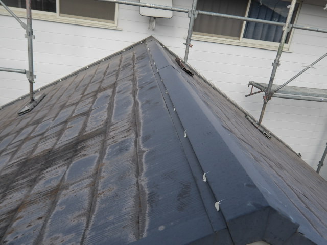 足場架設、屋根点検、屋根ブリキ釘の補強、エアコンスリムダクト撤去。